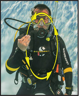 - 直ちに潜水を中止し、安全を確保しながら水面へ浮上する。