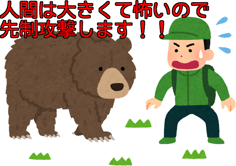 人間もクマと同じく大型哺乳類です。なので彼らは人間を怖がっています。でもばったりと出会い頭に出くわすと、彼らは恐怖のあまりパニックになり、自分や子供を守るために激しく攻撃してきます。