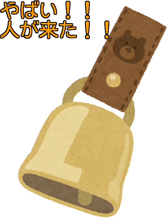 彼らに会わずに済むように熊鈴を携帯しましょう。おしゃべりもペットボトルを慣らすのも有効です。藪や見通しの悪いところでは積極的に音を出しましょう。